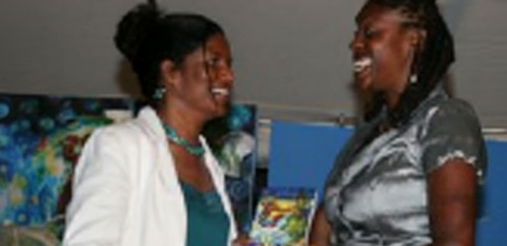 By Sharon AustinPublished: August 31, 2009 Author of The Pearl, Melanie Springer (right), presenting Minister of Youth, Family and Sports, Dr. Esther Byer Suckoo, with